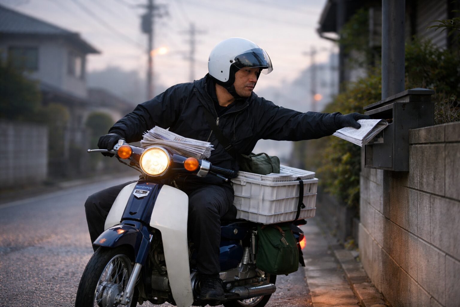 新聞配達や郵便配達の現場では、今でもスーパーカブが圧倒的シェア。